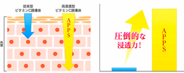 今までのビタミンCを凌駕した、ビタミンCの融合体”APPS”を贅沢に配合しているんです!