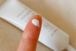 step1 いつものスキンケアの後に、米粒程度を手にとり、目の周りを円を描くようになじませる。