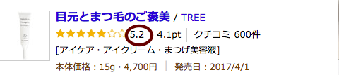 レビューで辛口評価の多い事でも有名な@cosme5.2を獲得。アイクリーム部門の口コミランキングで並み居るアイテムを抑え堂々の第1位!