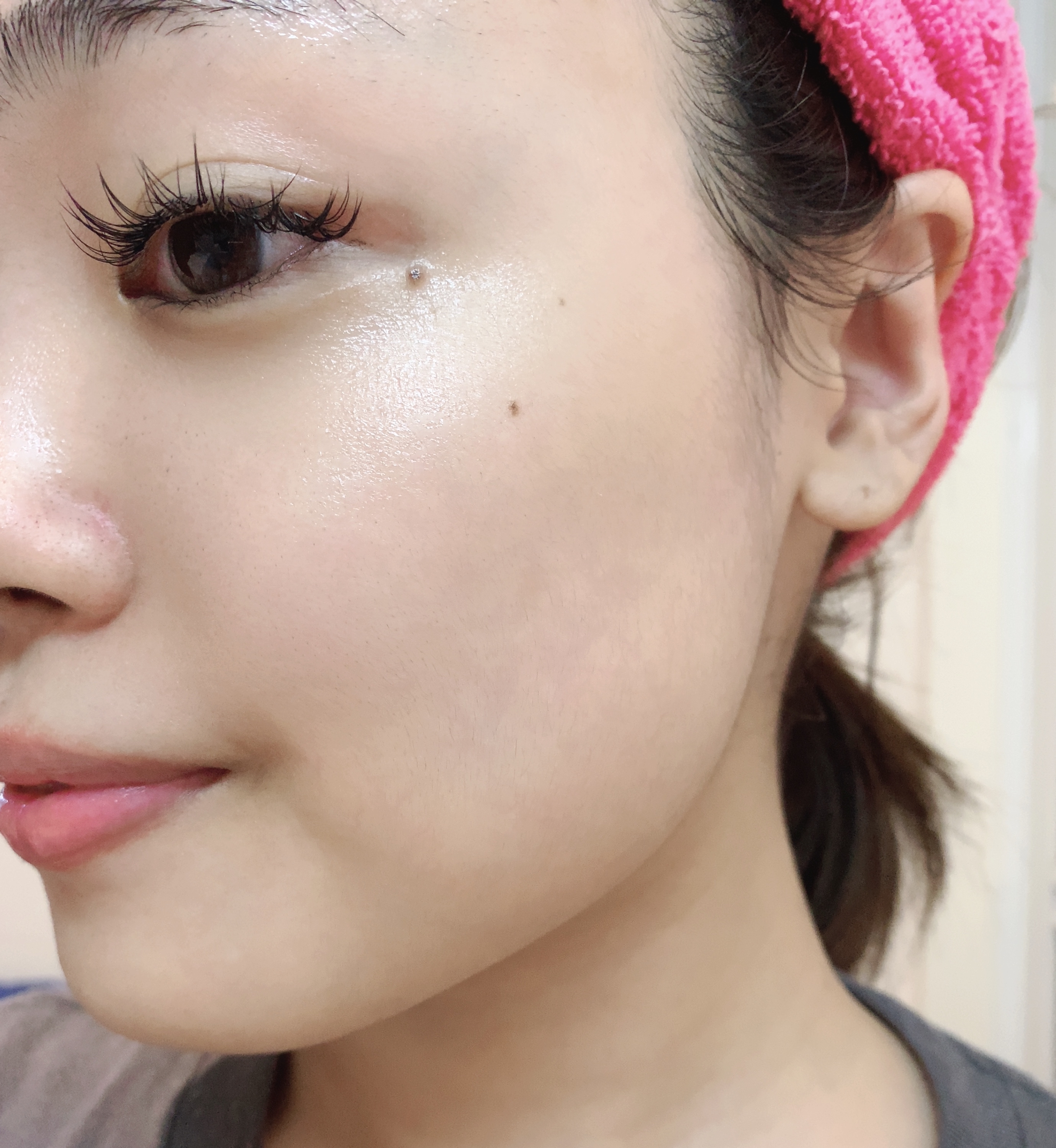 保湿成分がすぐに肌に吸収されて、指の腹で触るとピタピタと吸い付く感があります。ベトベト感はなく、あくまでしっとりもちもち。目尻や口元の気になっていたシワもふっくらしてきました。